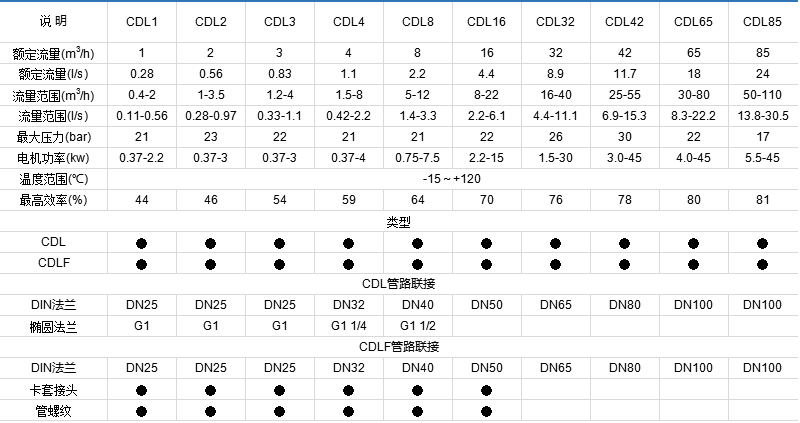 CDL/CDLF是一種多功能產品,可以輸送從自來水到工業(yè)液體的各種不同介質,適應于不同溫度、流量和壓力范圍,CDL適用于無腐蝕性液體,CDLF適用于輕度腐蝕性液體。
