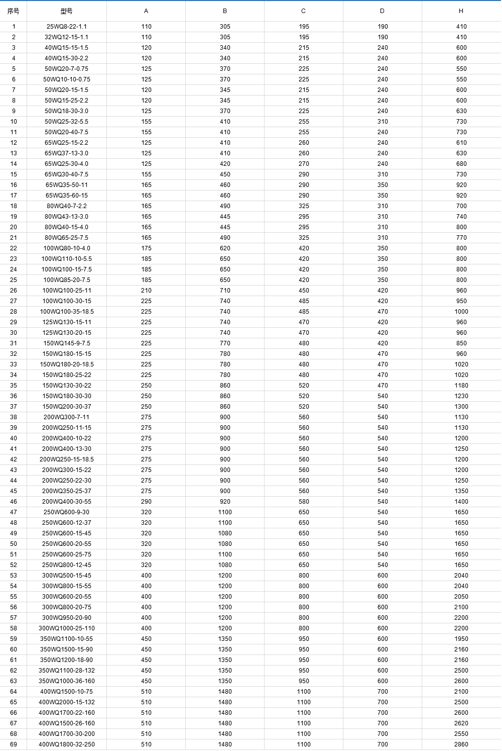 WQ型污水污物潛水泵,還采用不銹鋼葉輪及國內(nèi)先進的機械密封裝置,使用壽命達3000小時以上。該泵廣泛適用于抽送排放工業(yè)與生活廢水、污水,包括含有紙漿、木榍、淀粉、泥砂、碎石、短纖維等渣漿,固體的也液體及尿糞等,是工業(yè)、農(nóng)業(yè)、城市、建筑行業(yè)理想的給排污水工具。