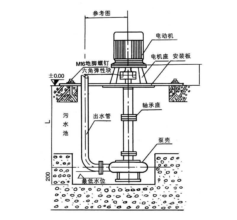 本泵可垂直或傾斜使用,占地面積小,蝸殼需埋在工作介質中工作,容易啟動,不需引水,旋轉方向應從電機尾部看是順時針方向工作。