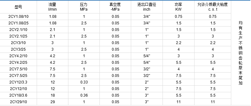 2CY系列齒輪潤滑泵主要用于各種機(jī)械設(shè)備中的潤滑系統(tǒng)中輸送潤滑油,適用于輸送粘度在10°E(75c.s.t)以下,溫度在300℃以下的具有潤滑性的油料,不銹鋼齒輪泵可輸送食用油料、飲料等。配用銅齒可輸送低閃點液體,如汽油、苯等。
