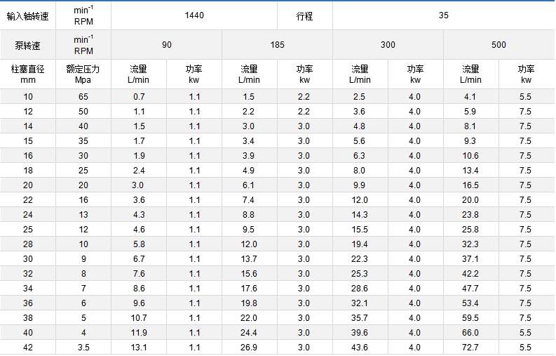 ◆ 你選型時表中流量不合適,可用電磁調(diào)速,變頻調(diào)速,變換柱塞直徑來調(diào)節(jié)流量,滿足選型需要。