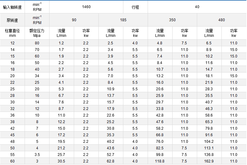 ◆ 你選型時表中流量不合適,可用電磁調(diào)速,變頻調(diào)速,變換柱塞直徑來調(diào)節(jié)流量,滿足選型需要。