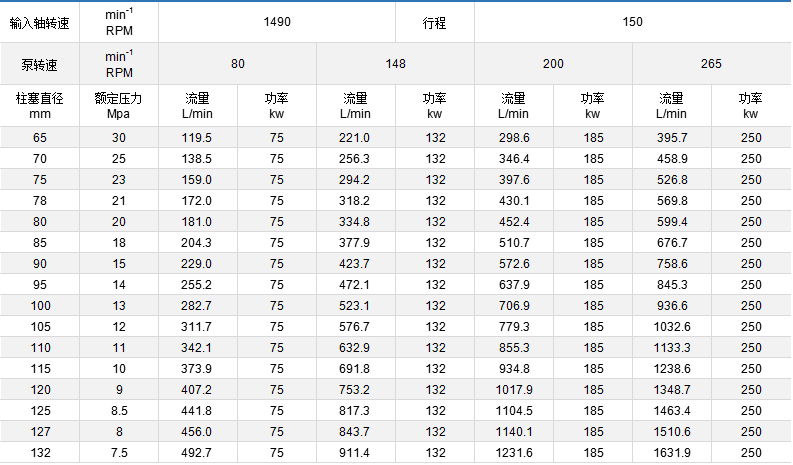 ◆ 你選型時表中流量不合適,可用電磁調速,變頻調速,變換柱塞直徑來調節(jié)流量,滿足選型需要。