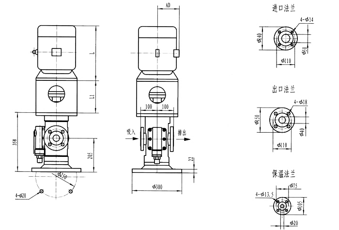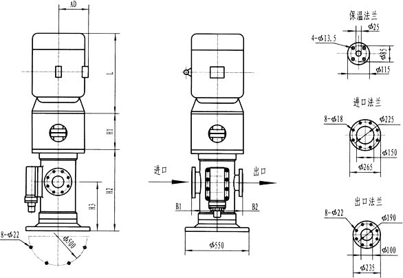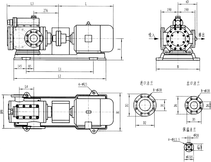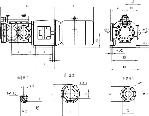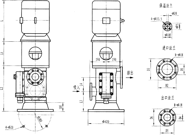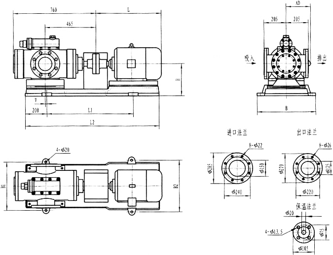 3GFBW60,3GF60型法蘭式泵外形及安裝尺寸