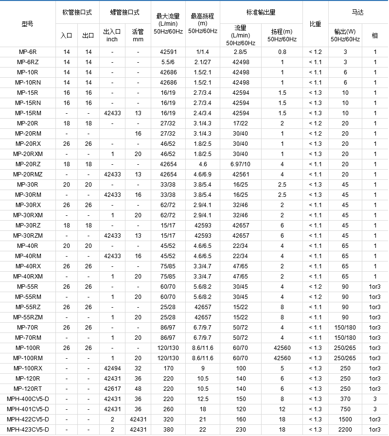 ◆ 螺紋接口式泵性能及安裝尺寸同軟管接口式泵;
