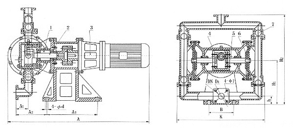 ◆ 根據(jù)不同介質(zhì),隔膜分為氯丁橡膠、氟橡膠、丁腈橡膠、四氟乙烯,完全可以滿(mǎn)足不同用戶(hù)的需要。過(guò)流部件也可根據(jù)用戶(hù)要求,分為鐵、不銹鋼、鋁合金,電機(jī)分為普通型和防爆型