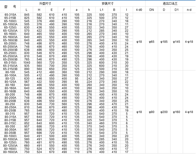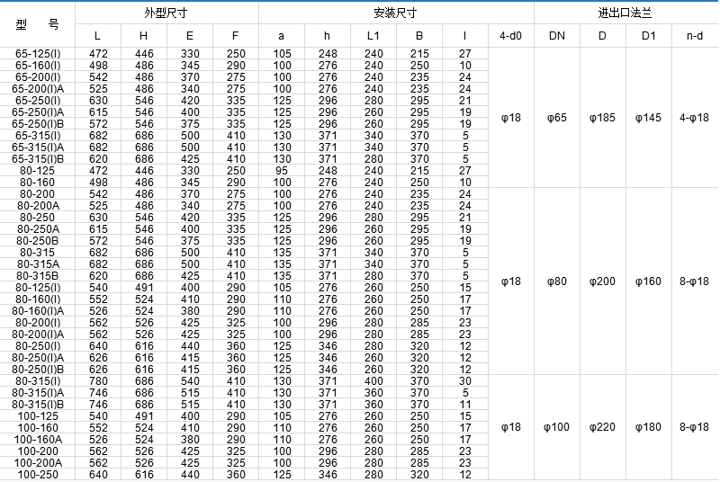 注:如果用介質(zhì)為帶有細小顆粒,請在訂貨時說明,以便廠家采用耐磨式機械密封。